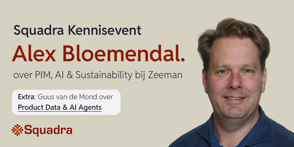 Je bent van harte uitgenodigd voor het Squadra kennisevent op donderdag 12 juni 2025! Voor dit exclusieve event hebben we Alex Bloemendal uitgenodigd, Manager E-commerce bij Zeeman. Hij licht graag toe hoe de textielsuper een succesvolle AI & PIM strategie heeft geïmplementeerd en welke rol duurzaamheid speelt in relatie tot Zeeman’s product data. Meld je aan!